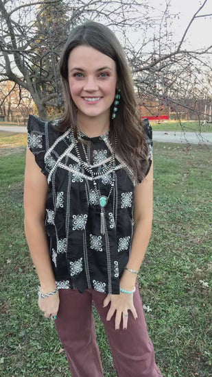 Creating a cute and timeless look is so easy with this eyelet lace trim top! Lightweight fabric, with pierced eyelet embroidered design, shapes ruffled flutter sleeves that support this darling top with a relaxed bodice and round neck. Lace trim adds a gorgeous detail on the front and back yoke.