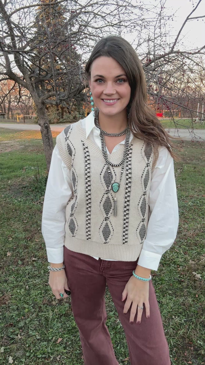 It's sweater vest season, and I love this one for so many reasons! It looks great on it's own and even better layered over a button down. I styled it with a crisp white, but the charcoal accents would make this look stunning over black and grey as well. Kelly is wearing her true size small.