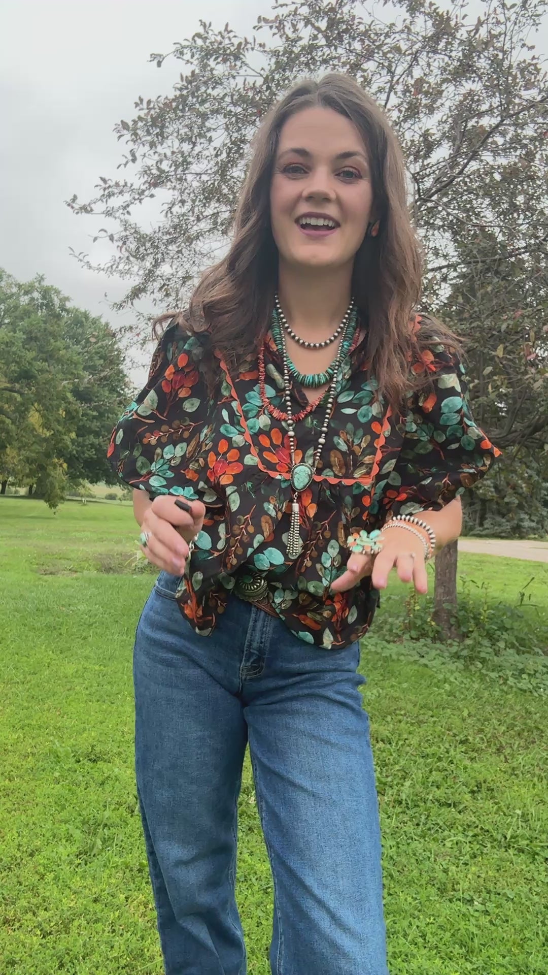 One of our best selling styles of blouse. This is the kind of blouse you’re going to where everyday, I promise! The fun floral print, great colors and a stunning scallop detail.
