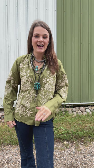 Solid ruffle accent V-neck top featuring floral embroidered applique short puff sleeve. Unlined. Woven. Non-sheer. Lightweight.