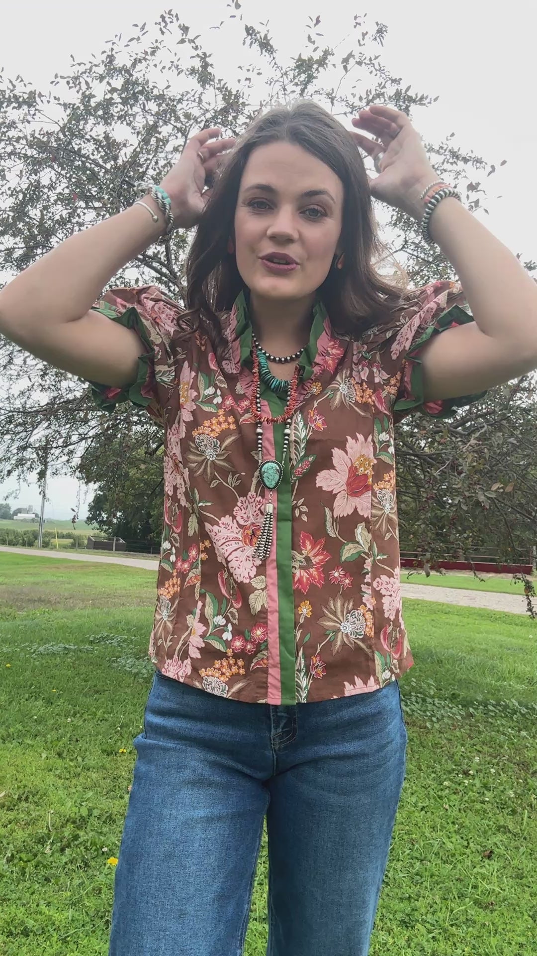 Ladies, this blouse is so dang stunning. The prettiest pattern, with a dramatic collar detail that carries to the sleeve. This is a full button front, but the buttons are behind the fabric to give a feel of a blouse.