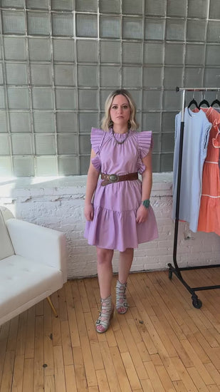 The most romantic summer wedding guest dress. A solid high neck mini features pleated sleeves and pockets at sides. Button closure at back. Lined. Woven. Non-sheer. Lightweight.